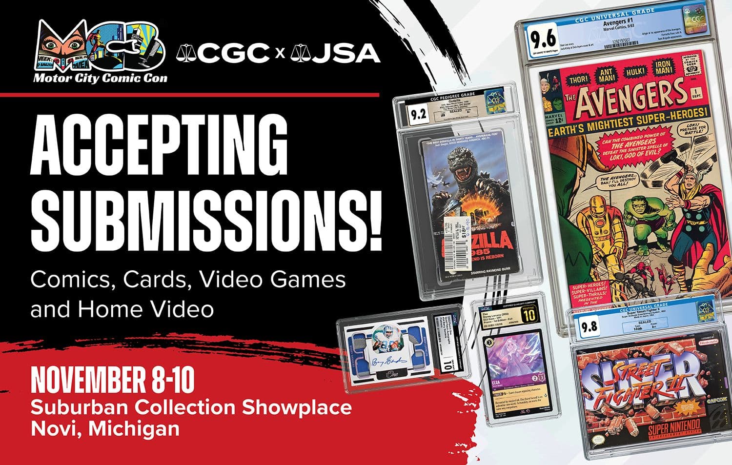 CGC® and JSA® are excited to be accepting submissions at Motor City Comic Con at the Suburban Collection Showplace in Novi, Michigan, on November 8-10, 2024.
