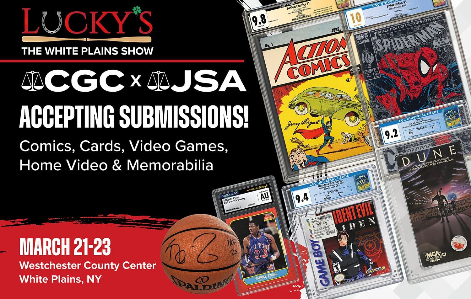 CGC® and JSA® are excited to be accepting submissions of cards, comic books, video games, home video collectibles and memorabilia at The White Plains Show, being held at the Westchester County Center in White Plains, New York, on March 21-23, 2025.