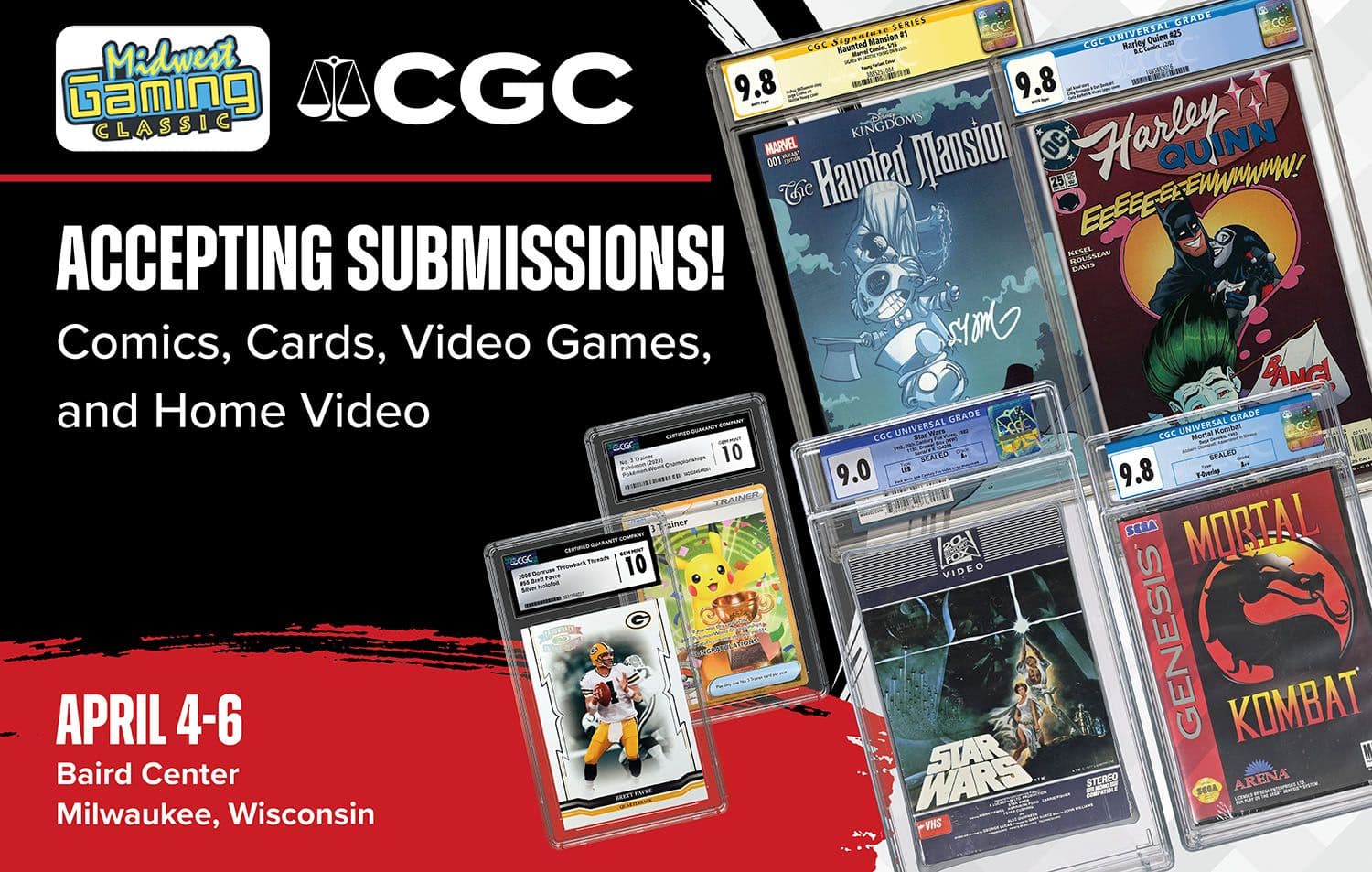 Certified Guaranty Company® (CGC®) is excited to be accepting submissions of video games, comics, cards and home video collectibles at Midwest Gaming Classic, being held at the Baird Center in Milwaukee, Wisconsin, on April 4-6, 2025.
