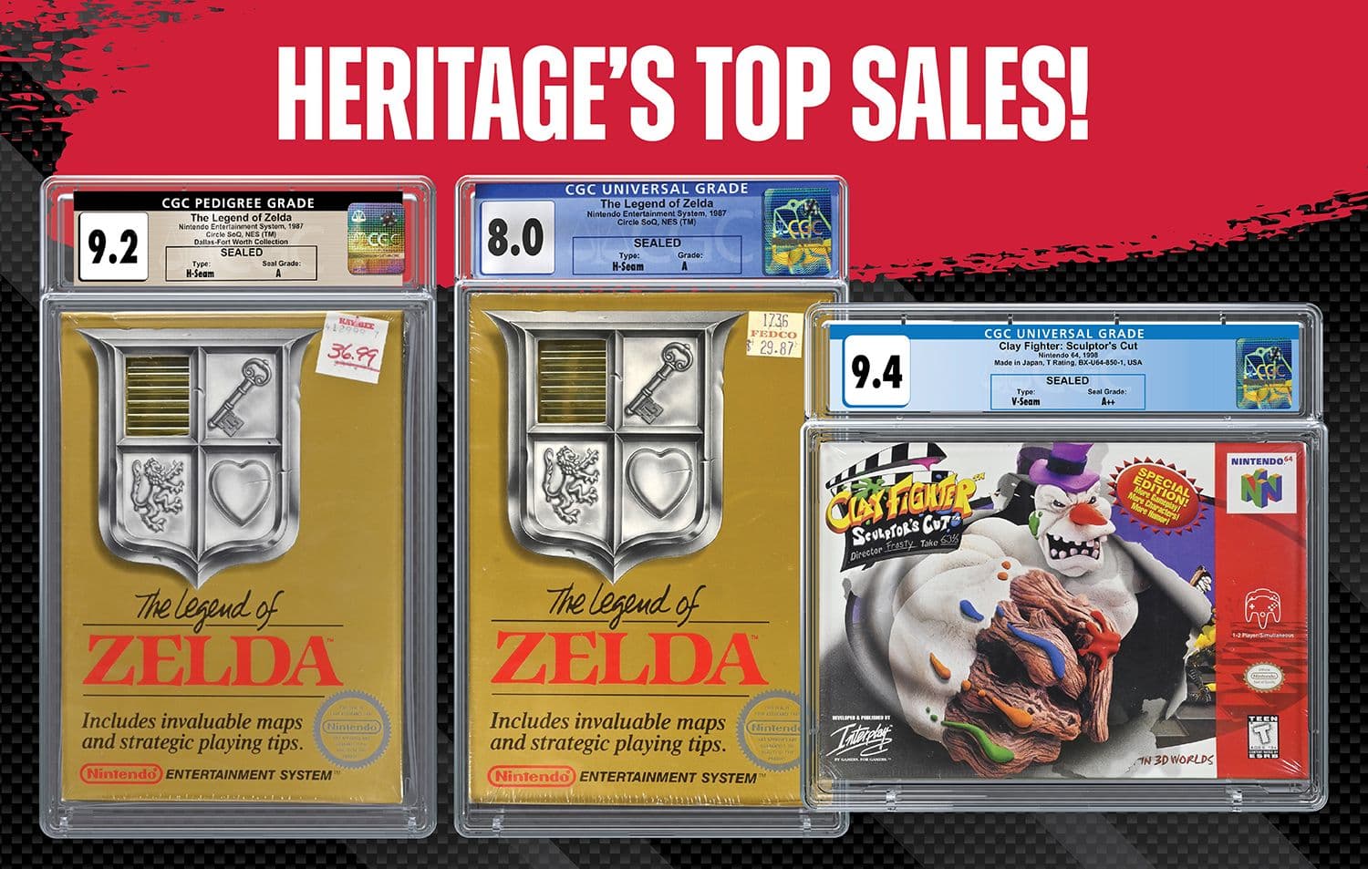 The top-selling game on Heritage Auctions in 2024 was a sealed copy of The Legend of Zelda for the Nintendo Entertainment System (1987) graded CGC 9.2 A and pedigreed to the Dallas-Fort Worth Collection, which realized $375,000 on August 23. As of December 2024, this example is the highest-graded first production copy of The Legend of Zelda ever offered in a public auction. Additionally, this CGC-certified The Legend of Zelda was part of the highly esteemed Dallas-Fort Worth Collection, a group of more than 300 classic video games in excellent condition.