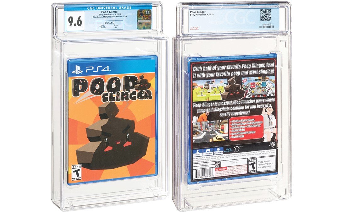 Another highlight in the auction is Poop Slinger for the PlayStation 4 (2019) graded CGC 9.6 A+ (lot 28339). This is the only copy of Poop Slinger certified by CGC Video Games and only the second copy to be offered by Heritage Auctions. Only 84 copies of the game were ever sold. To learn more about Poop Slinger, click here.