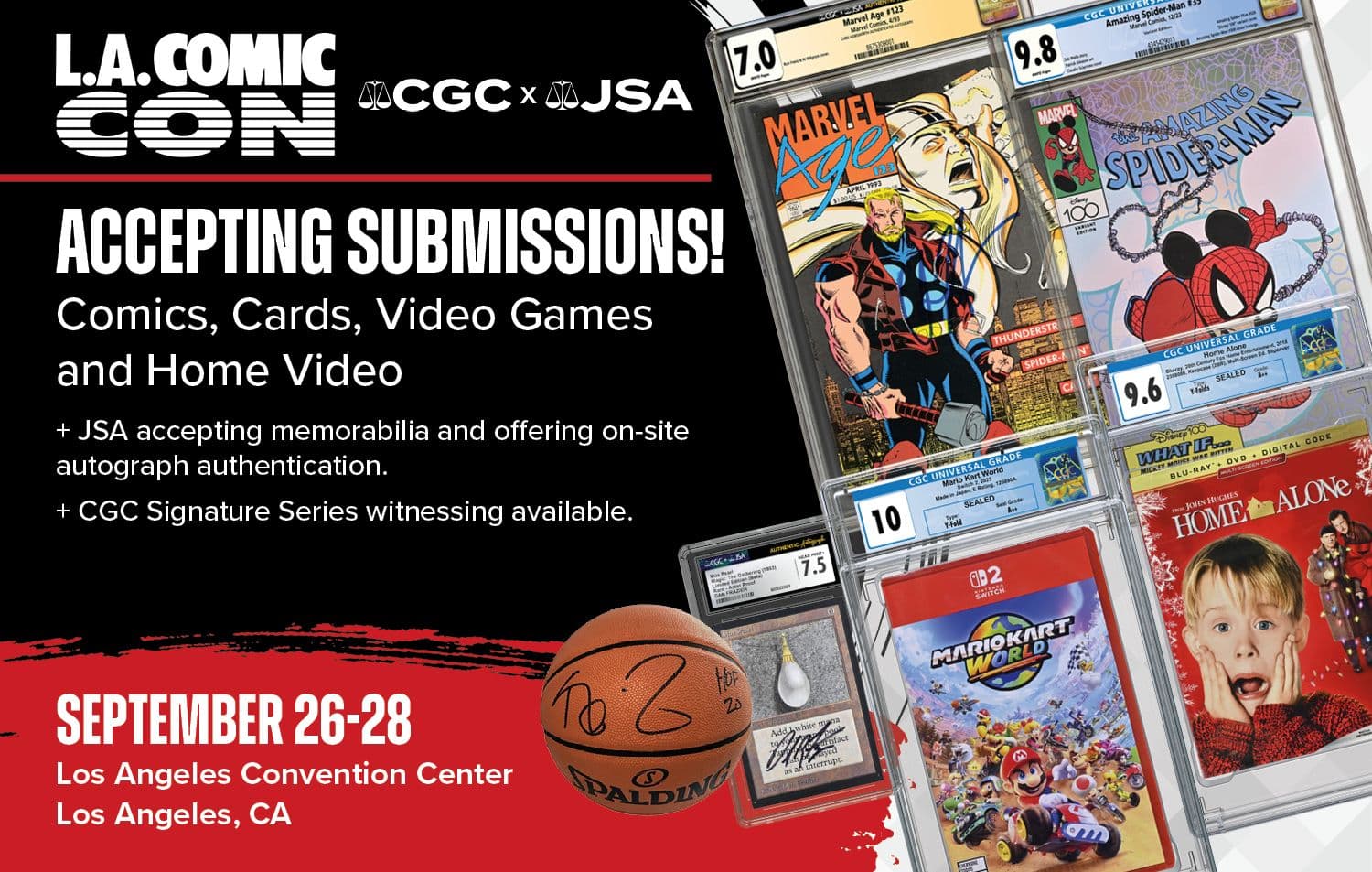 You can submit your comics, cards, video games, home video collectibles and memorabilia to CGC and JSA at L.A. Comic Con in Los Angeles on September 26-28!