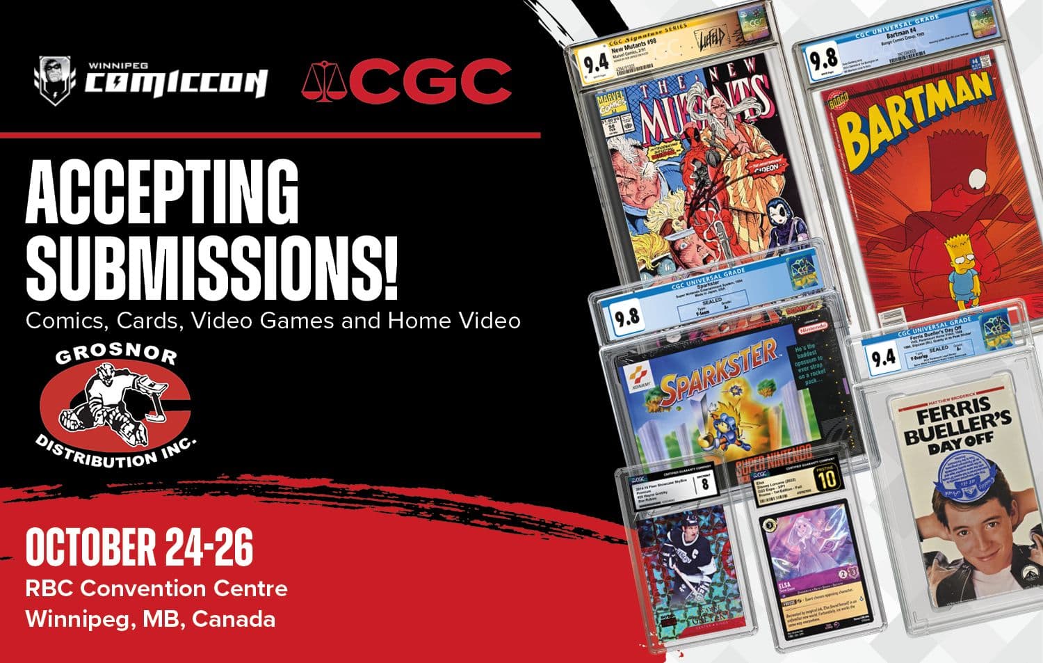 Certified Guaranty Company® (CGC®) is excited to be accepting submissions through Grosnor Distribution at Winnipeg Comiccon at the RBC Convention Centre, in Winnipeg, Manitoba, Canada, on October 24-26, 2025.