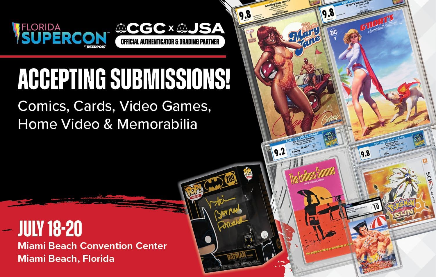 CGC® and JSA® are excited to be accepting submissions at Florida Supercon at the Miami Beach Convention Center, in Miami, Florida, on July 18-20, 2025.
